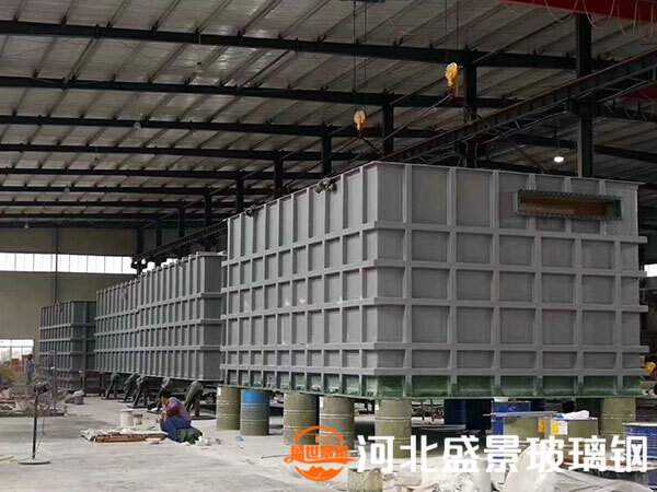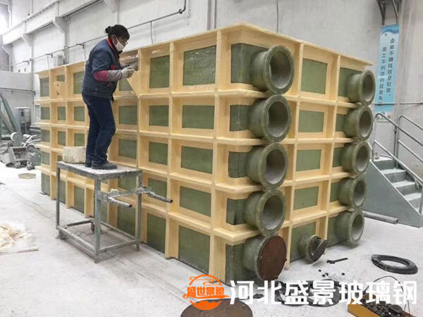 根據(jù)未使用的介質(zhì)和溫度,玻璃鋼方槽由未使用的樹脂進(jìn)行模具制作,研磨膏鋪設(shè)到一定厚度后,固化后去除內(nèi)部磨料,根據(jù)未使用的鱗片制作外鋼骨架,起到加固外墻的作用。